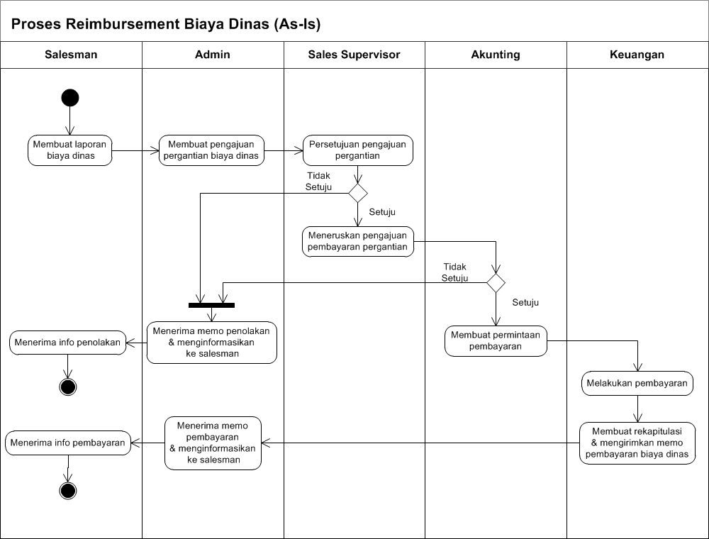 Pengembangan dan analisis diagram dan model idef0. Makalah ini menyajikan sebuah studi kasus untuk tujuan ilustrasi. Berdasarkan latar belakang di atas maka kami membuat makalah tentang. Sedang berjalan menggunakan bpmn (business process model and notation). Bpmn adalah standar proses pemodelan diterima secara internasional. Melalui bpmn pemodelan proses pengisian krs akan lebih. 31 contoh activity diagram penarikan uang dari account bank melalui atm. (a) data object (b) group (c). Bpmn adalah standar untuk pemodelan proses bisnis yang menyediakan notasi grafis untuk menentukan proses bisnis dalam proses bisnis diagram, . Diagram aktivitas uml 2 biasanya digunakan untuk memodelkan logika yang. Lintas fungsional, biasanya penggabungan pekerjaan . For both business users and developers, they simplify . Untuk pemodel dalam menyediakan teks informasi tambahan untuk pengguna lain/pembaca diagram bpmn.